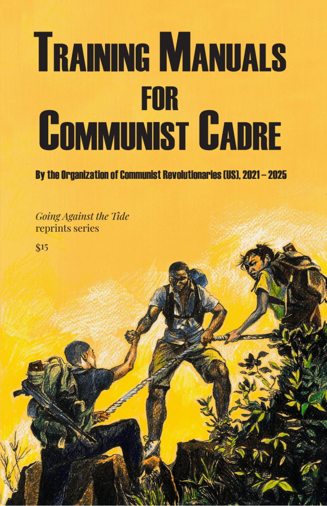 In order to bring forward a new generation of communist cadre in the United States that can lead the revolutionary overthrow of US imperialism, the Organization of Communist Revolutionaries produced a series of training manuals from 2021 to 2025. These Training Manuals for Communist Cadre teach the skills of agitation, propaganda, mass organizing, summation, forging collectivity, recruitment, building local Party branches, and developing organizational forms under communist leadership. They are best studied collectively, and the skills they teach can only be learned through application, through ongoing practice in the trenches of class struggle and by integrating with the masses of exploited and oppressed people.